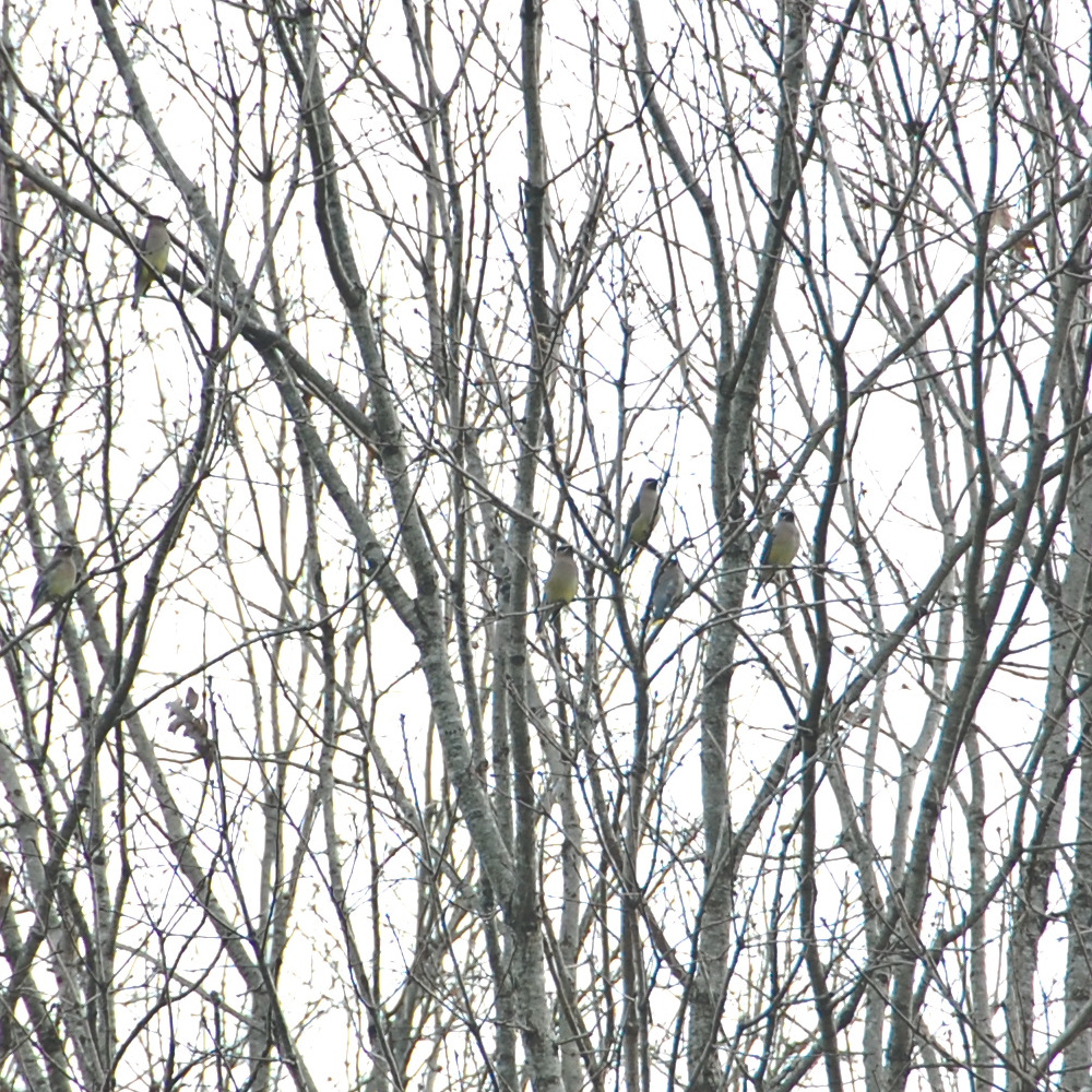 The winter birds have arrived, and the typical backyard birds are starting to come back from their fall harvests. I saw a pair of gadwalls, hooded mergansers, and a bufflehead duck in the retention ponds. There was a large group of rew-winged black birds on the trail one day, and a group of cedar waxwings off in the distance on another day. A great blue heron was hunting from a tree this week.