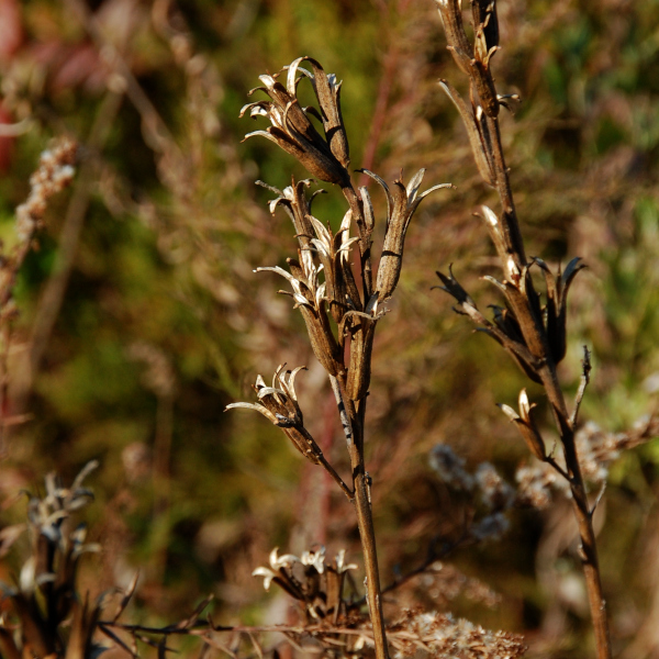 I thought back to the flowers I had seen in this spot over the course of the year. The stems were 3-5 feet tall. The flowers were in clusters at the top of the stem. From what remained of the plant, it seemed like the flower had four petals. I guessed that it was evening primrose. A quick web search when I got home revealed that my guess was correct! This is evening primrose in the winter.